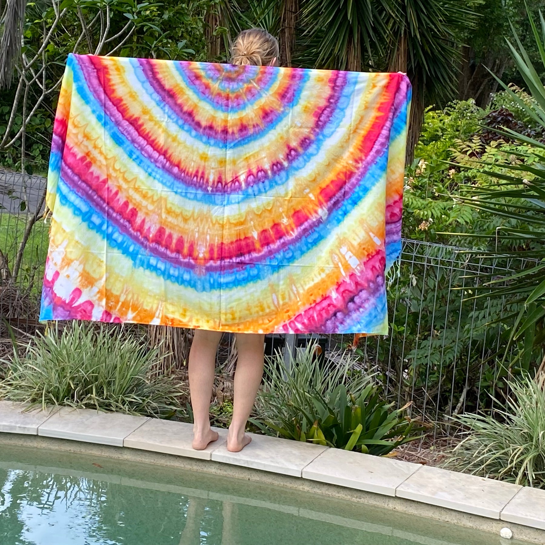 Not only can it be tied around you, use it as a towel,  ground cover, picnic throw.