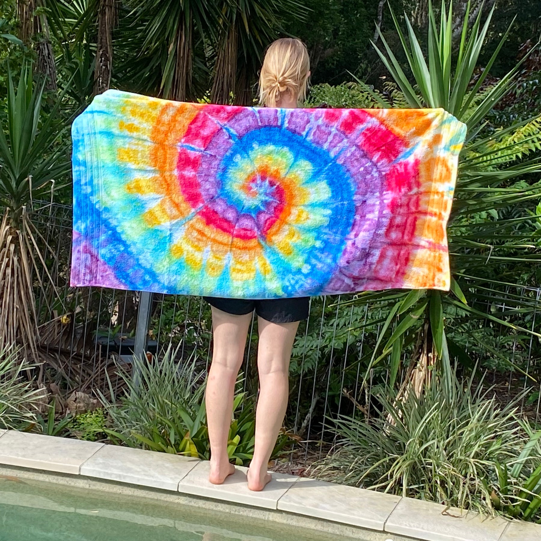 With their vibrant colours and unique tie dye patterns, our beach towels are sure to turn heads and make a statement wherever you go. So why settle for a boring old towel when you can add some flair and personality to your beach days with our beautiful tie dye beach towels? Order yours today and get ready to soak up the sun in style!
